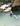 Парк или сквер, вымощенная плитка, два человека стоят рядом друг с другом, один из них в красных спортивных штанах и белой футболке, второй в тёмной одежде с красным рюкзаком. Перед ними на дорожке идут два белых лебедя. На заднем плане беседка, зелёные растения, деревья, домики и памятник. День пасмурный.
